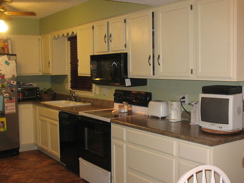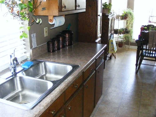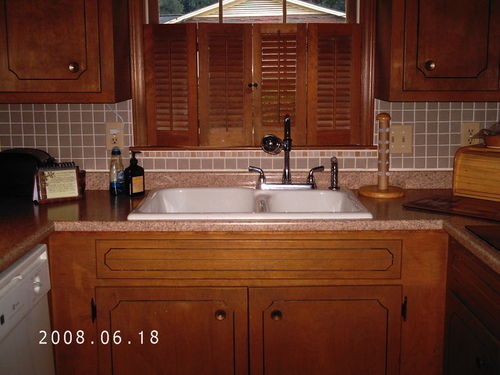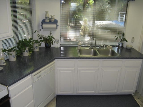 Kitchen in color 1839 and is preformed counter tops with a backsplash attached.